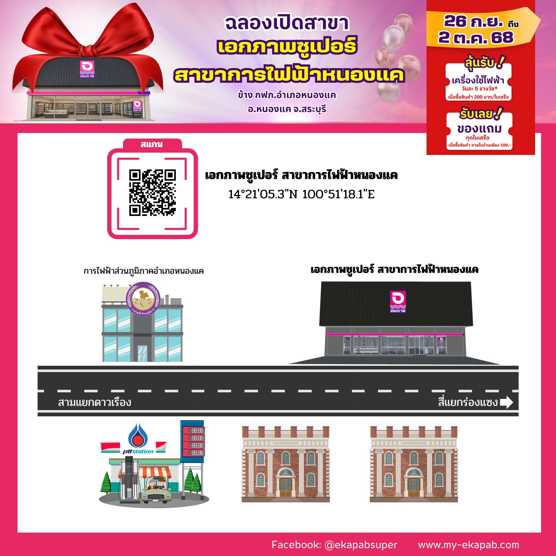 บริษัท เอกภาพซูเปอร์ ขอเชิญชวนทุกท่านร่วมฉลองการเปิดสาขาใหม่ เอกภาพซูเปอร์ สาขาการไฟฟ้าหนองแค จังหวัดสระบุรี ตั้งอยู่ข้างการไฟฟ้าส่วนภูมิภาค อำเภอหนองแค เพื่อให้บริการลูกค้าในพื้นที่และชุมชนใกล้เคียง