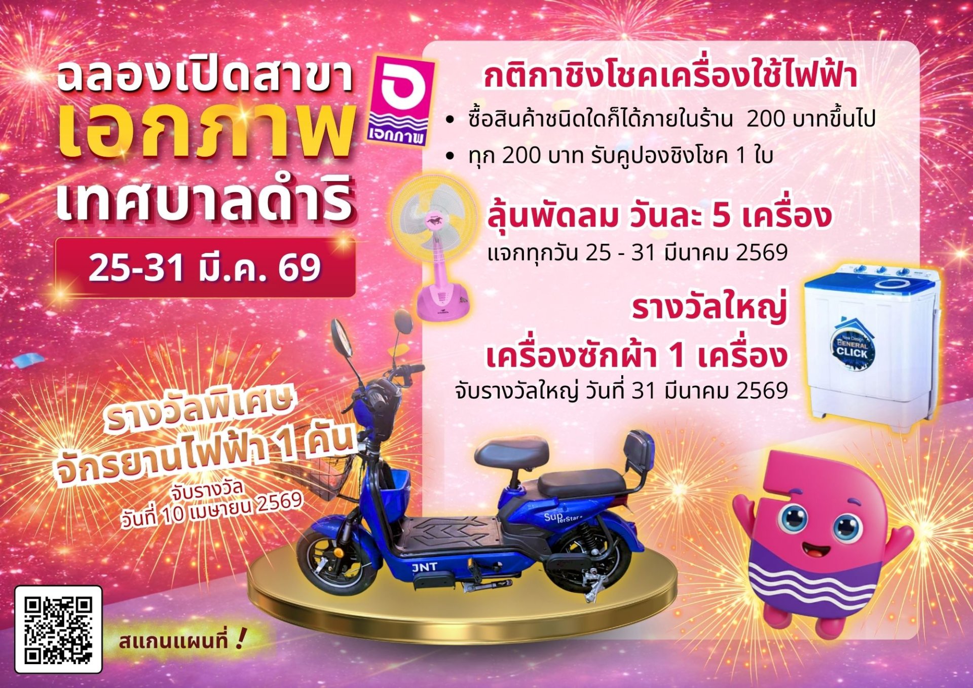 งานฉลองเปิดสาขาจะจัดขึ้นระหว่างวันที่ 25 – 31 มีนาคม 2569 โดยทางร้านขอเชิญชวนลูกค้าและประชาชนในพื้นที่มาร่วมเป็นส่วนหนึ่งของกิจกรรมเปิดสาขาใหม่ พร้อมเลือกซื้อสินค้าคุณภาพในราคาสุดคุ้ม